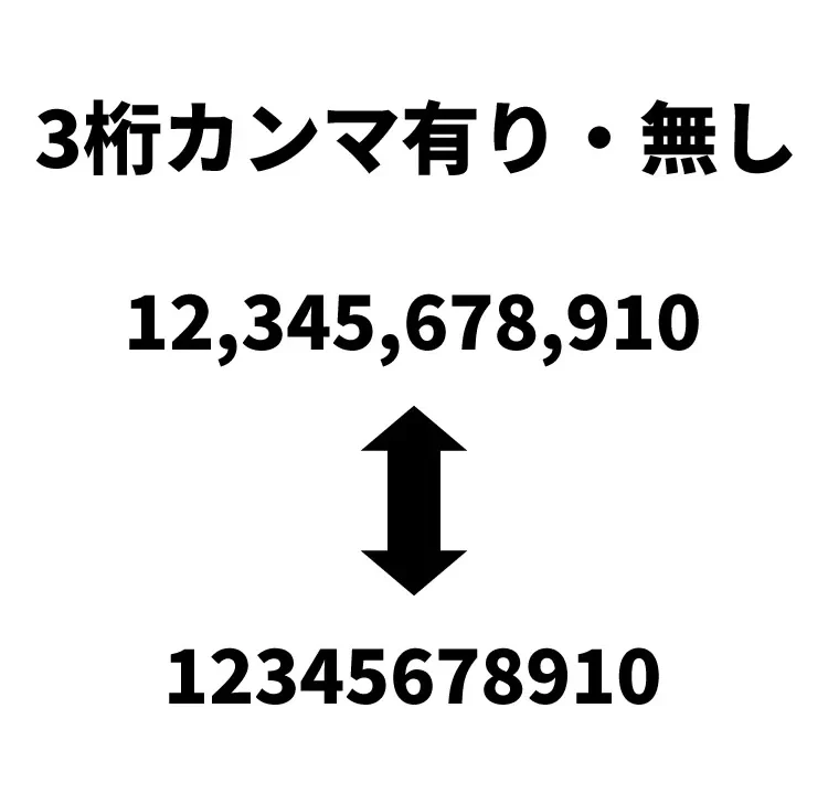 <h2>変換前:3桁カンマ区切り無し</h2>